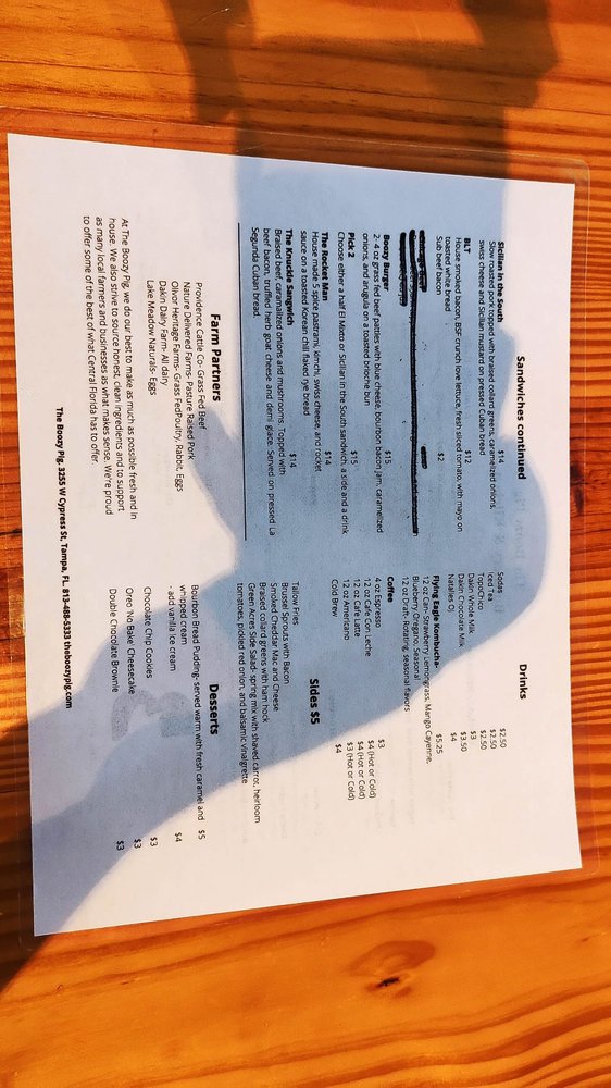 Welcome to The Boozy Pig, a delightful breakfast and brunch haven located at 3255 W Cypress St, Tampa, FL. This charming eatery specializes in mouthwatering sandwiches that showcase a unique fusion of flavors. The menu offers delectable options such as the Breakfast Burger, featuring a succulent 5 oz breakfast sausage patty topped with a boozy sauce, bacon, scrambled egg, and smoked gouda, all nestled within a brioche bun for just $18.00.